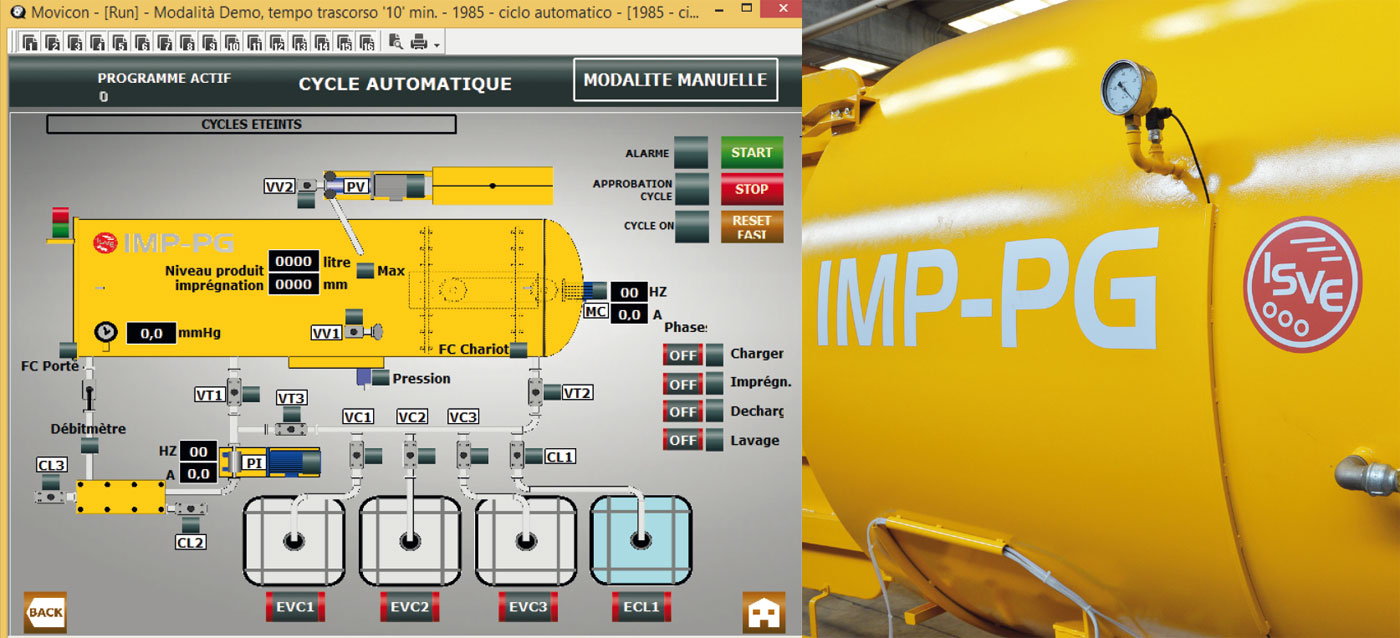 The realisation of mod. IMP-PG vacuum impregnation plants, designed to operate using a limited quantity of impregnant contained in the plant, has enabled firstly, the clear or coloured application of impregnants to be used followed by primer and finish coatings.