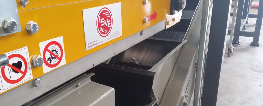 Plant for separating prepacked liquid waste A new system to separate the liquid part from the packed bottles allowing the elimination of expired or defective packagings. ISVE has recently designed a plant to enable the separation of prepacked liquid waste. The classic application concerns companies whose main activity is bottling and packing of drinks, fruit juice, mineral water, etc. A loading belt transports the material into a four-shaft model 80/80E shredder. The machine will break the bottles, while a stainless steel mesh belt will separate the liquid part from the remaining material. Then PET parts or similar materials are then unloaded into Big-Bags, while liquids are roughly filtered and transported to the depuration plants. This system can treat up to
