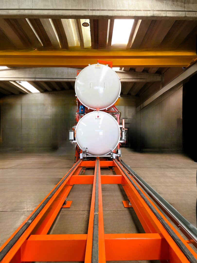 - Autoclave: el corazón de la planta de tratamiento está diseñado para crear un entorno controlado para los ciclos de vacío-presión. Esto garantiza que la solución Burnblock® penetre profunda y uniformemente en la madera, proporcionando una protección superior contra el fuego.