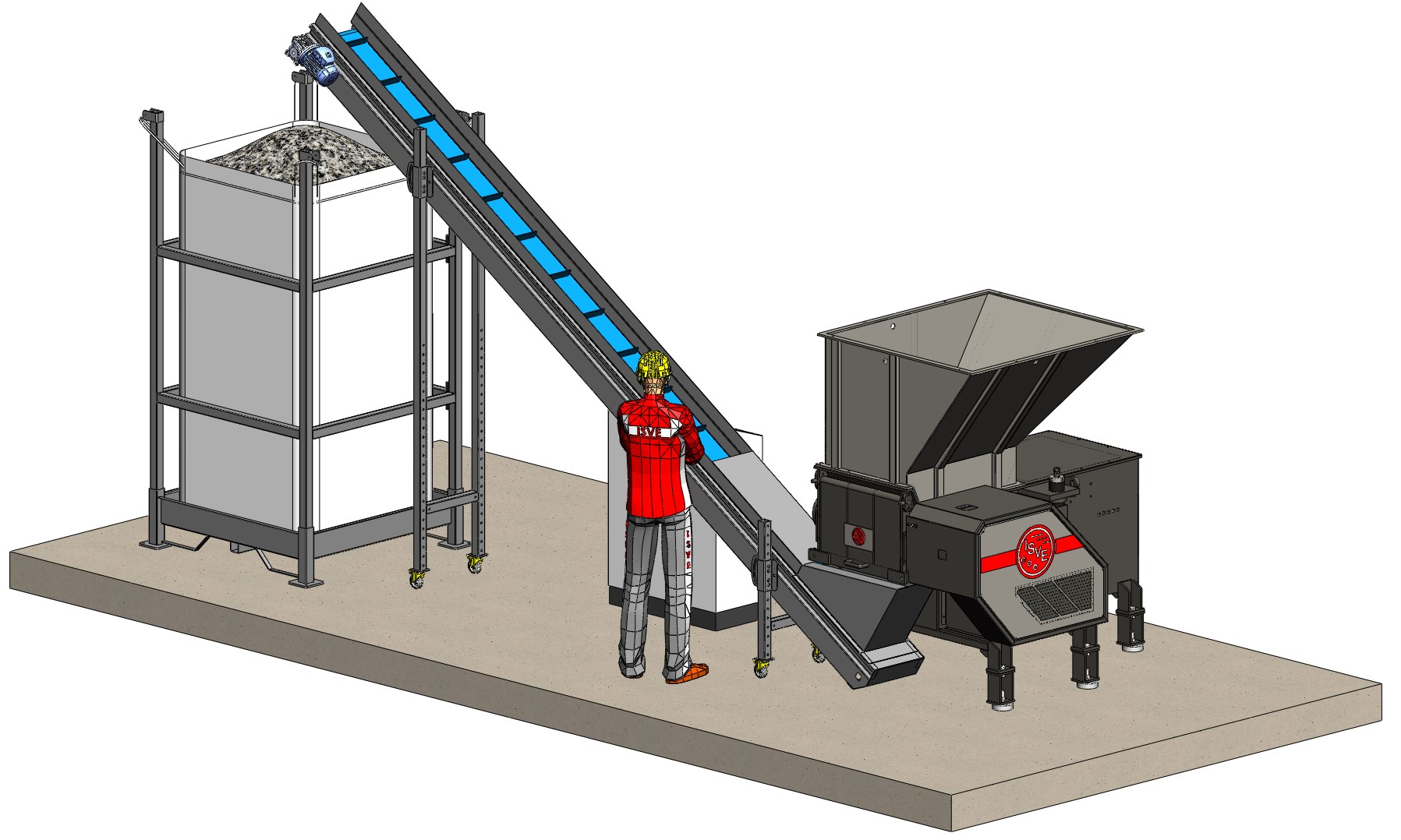Este es el proyecto a medida que hemos creado para nuestro cliente húngaro que necesitaba triturar IBC con jaula metálica. Este sistema particular ha sido
