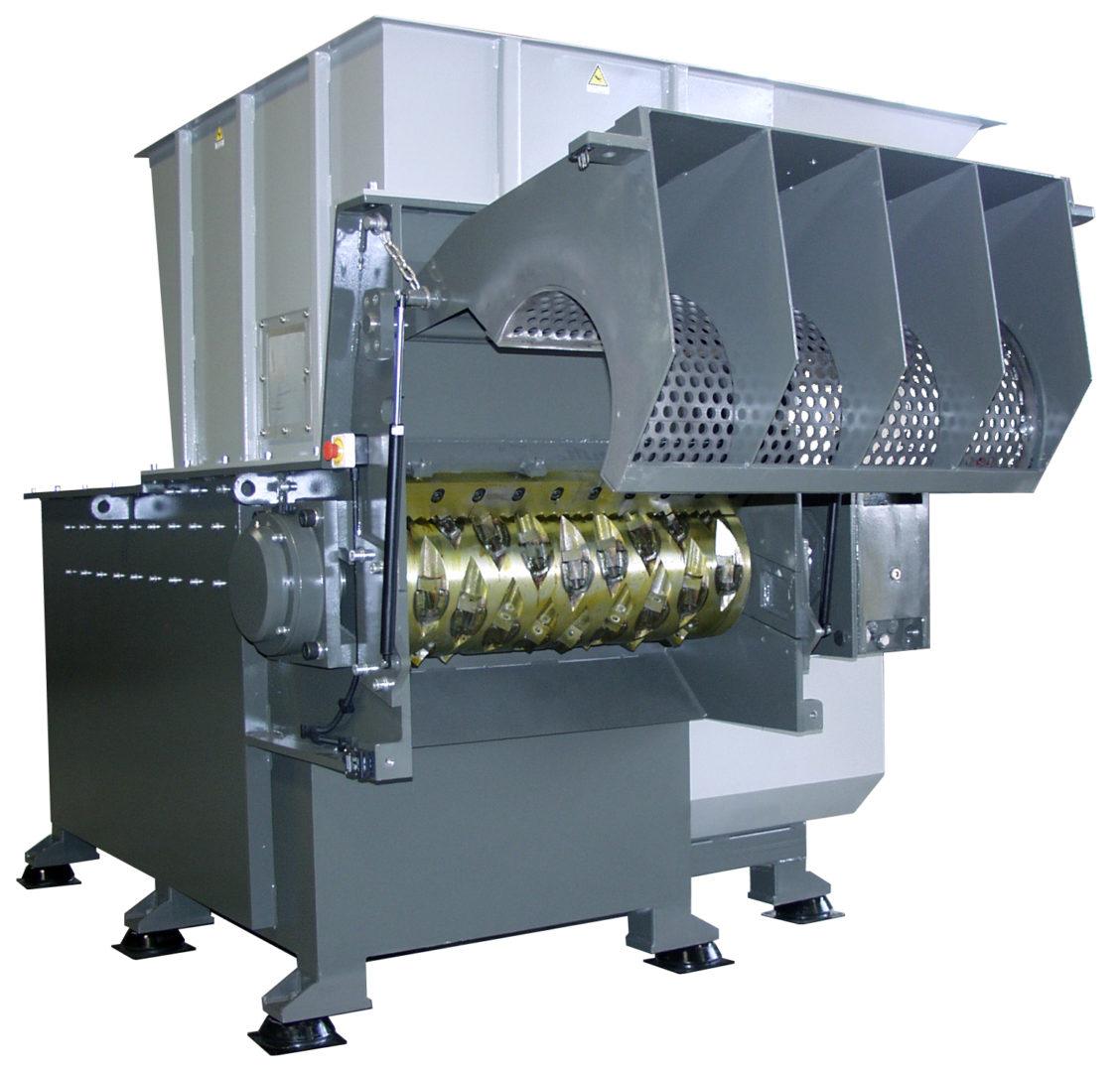 Macchina di notevoli dimensioni, adatta per la macinazione di numerosi materiali di scarto. Può essere inserita in linea per il funzionamento in continuo. Consigliata per la triturazione di legna di scarto, plastica di elevato spessore, carta, documentazione riservata, lastre estruse, scarti di gomma, cavi elettrici, rifiuti ospedalieri, ecc.