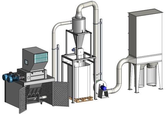 L’impianto è costituito da un gruppo di triturazione modello 40/80S in linea con un mulino GR500.