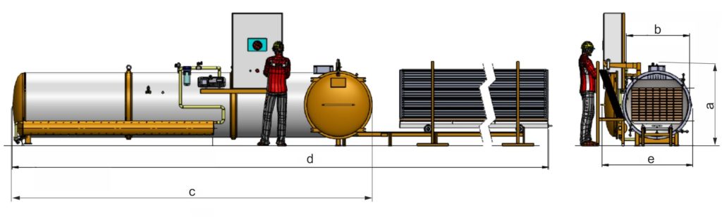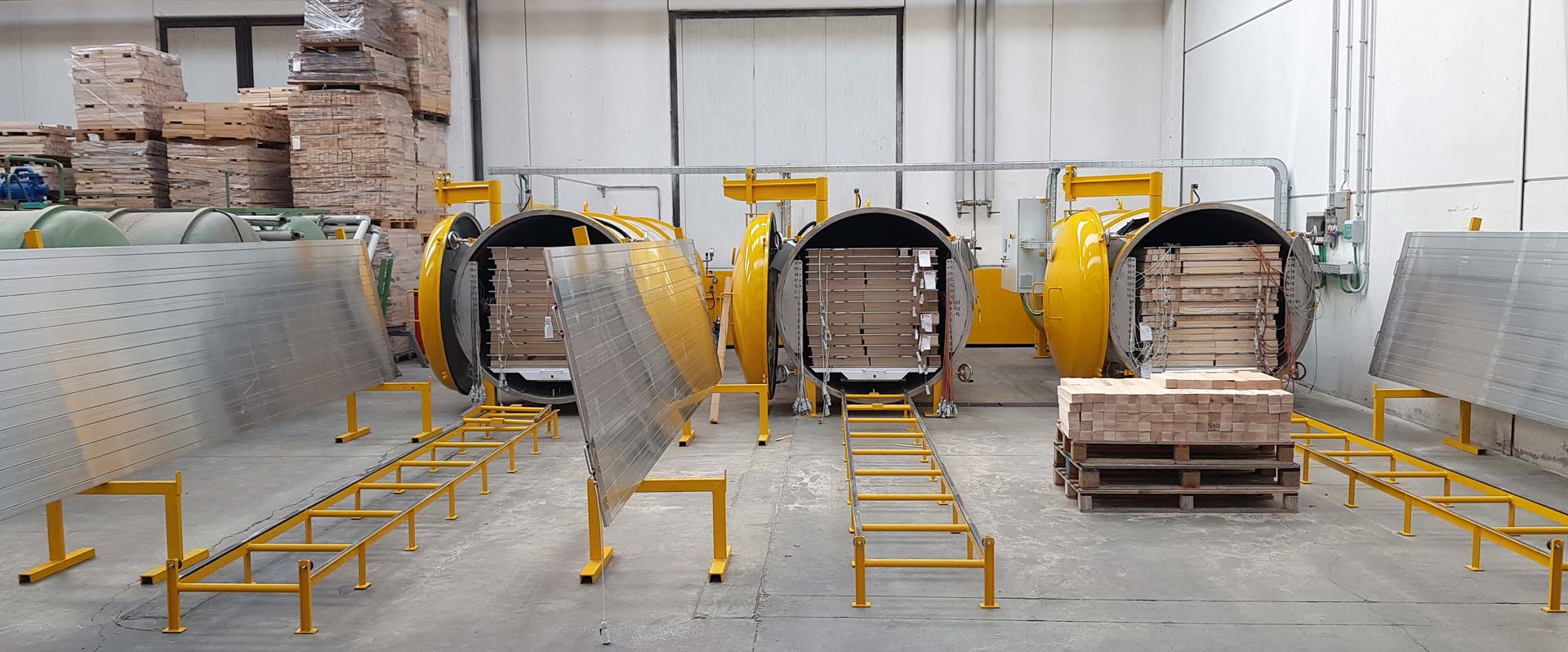 Essiccatoio a vuoto continuo modello ES Gli essiccatoi a vuoto continuo serie ES hanno una capienza che va da 3 a 20 m3. Sono indicati per le falegnamerie o per i commercianti di legname che ricercano la qualità dell’essiccazione abbinata ad una elevata produttività. Questi impianti di essiccazione legno racchiudono tutta la tecnologia e l’esperienza sviluppata in venti anni di progettazione e produzione di impianti per il trattamento del legno. Problemi di spazio in azienda? Necessità produttive limitate? Per questi professionisti, ISVE ha messo a punto gli essiccatoi ES Junior e ESC ad apertura verticale. Caratteristiche principali Autoclave: – in acciaio verniciato con prodotti epossidici per il trattamento di essenze legnose senza tannino. – in acciaio inox AISI 304