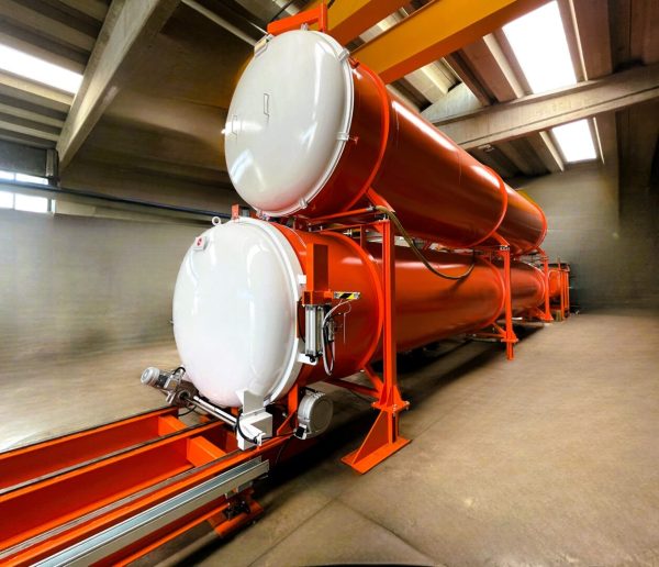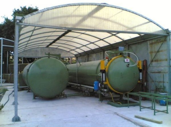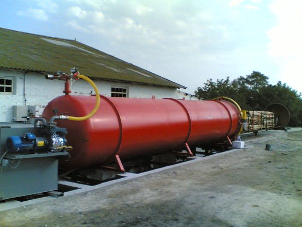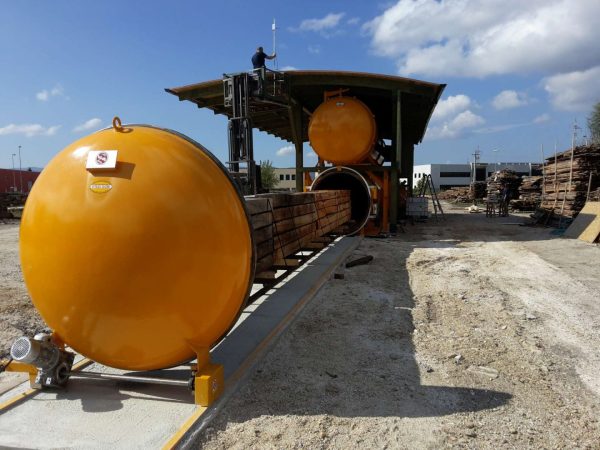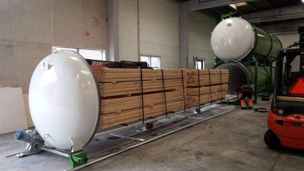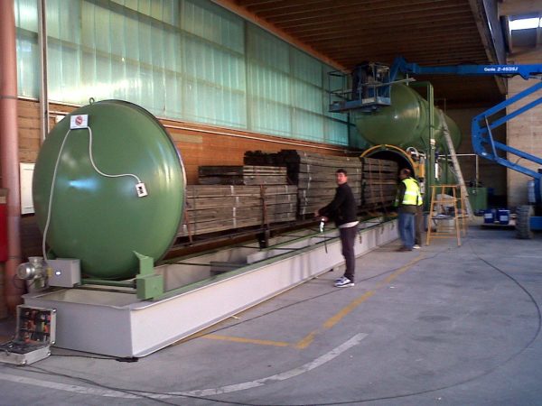 L’impianto è costituito da un’autoclave dove viene inserito il legno da trattare. Dopo una prima fase di vuoto, la soluzione impregnante viene prelevata da un serbatoio e spinta a pressione all’interno del legno. La combinazione del vuoto iniziale con la fase ad alta pressione garantisce la massima penetrazione dei principi attivi.